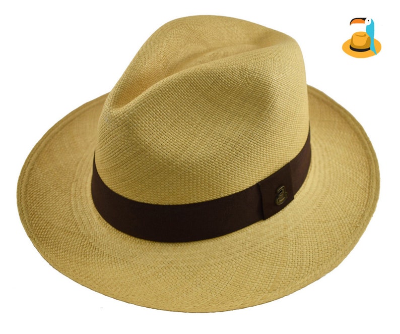 Classic Fedora | Genuine Panama Hat | Beige Toquilla Straw | Brown Band | Handwoven in Ecuador - EA - HatBox Included