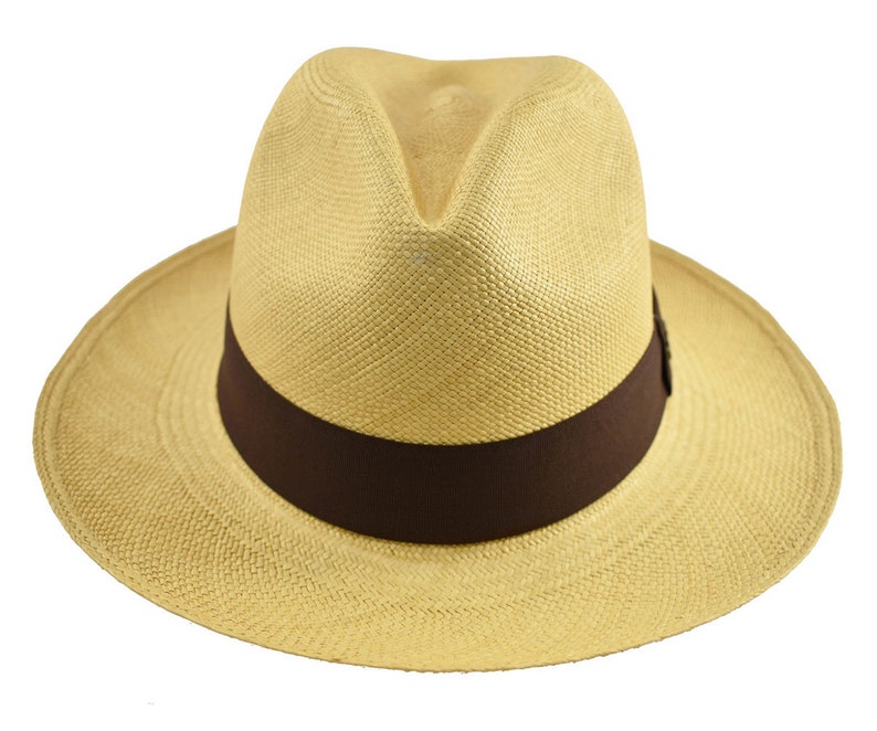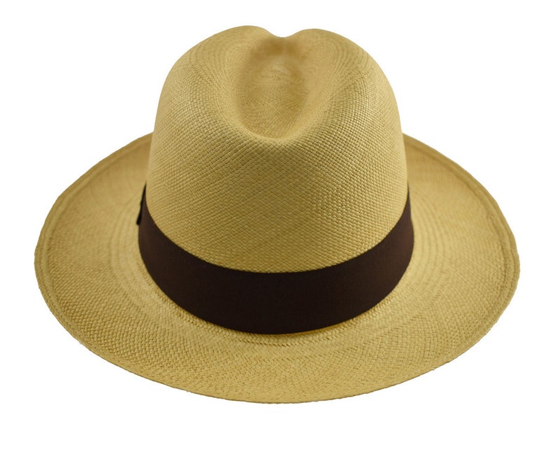 Classic Fedora | Genuine Panama Hat | Beige Toquilla Straw | Brown Band | Handwoven in Ecuador - EA - HatBox Included