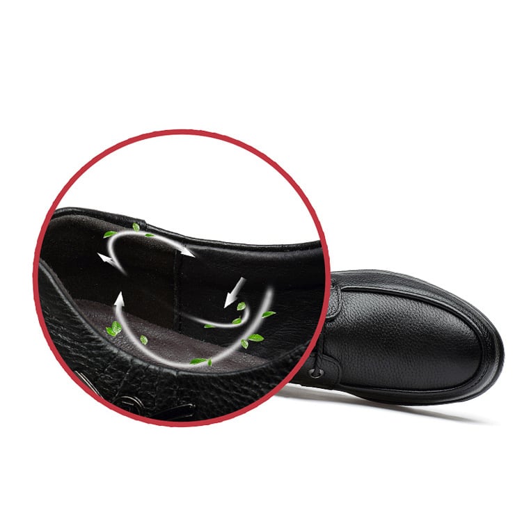 These men's shoes feature high-quality leather that allows for proper air circulation, keeping your feet cool and dry throughout the day. This feature is particularly beneficial during warmer seasons or in environments where foot perspiration is common. The breathable nature of the leather helps prevent discomfort, odor, and moisture build-up, ensuring a fresh and pleasant experience for your feet.
