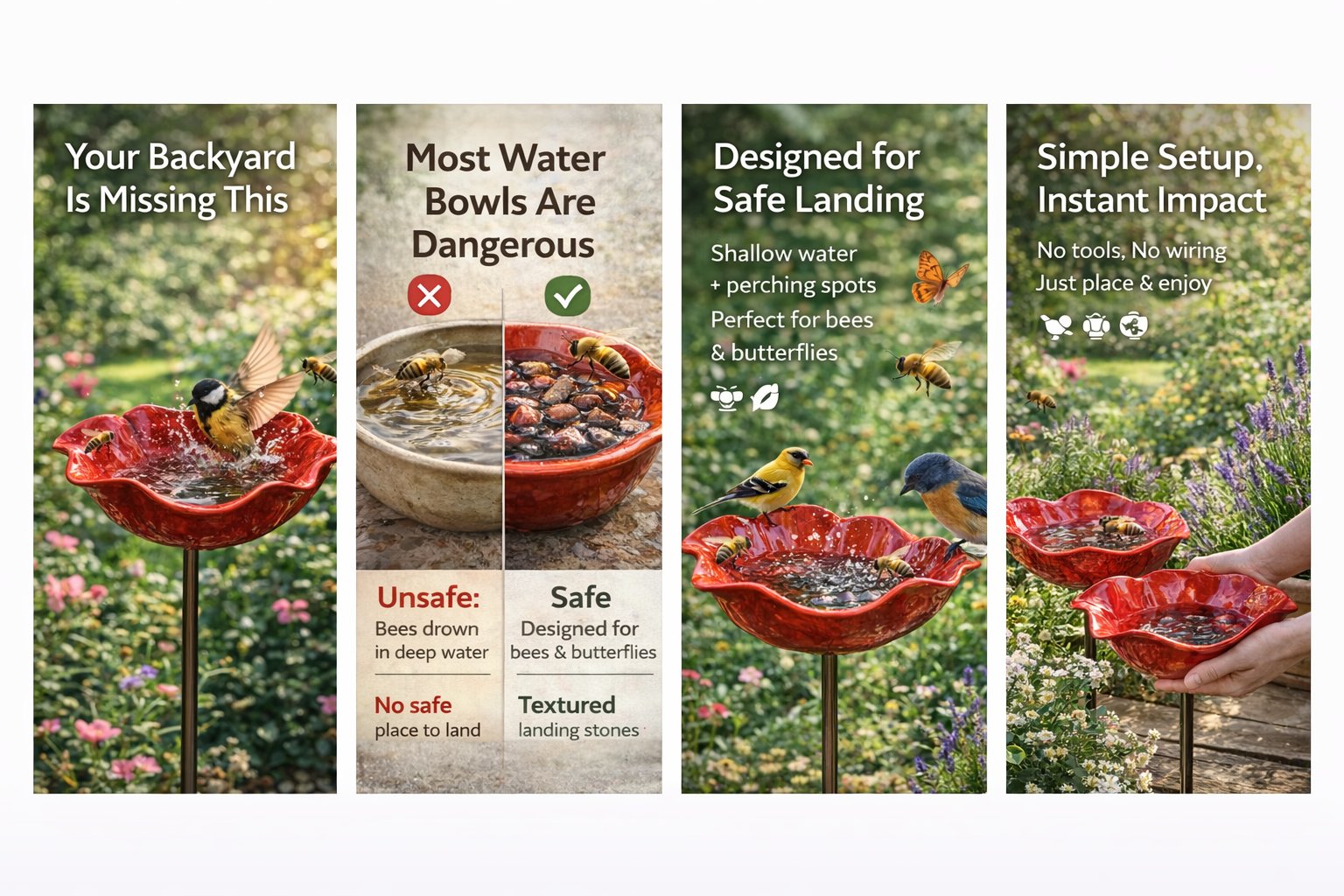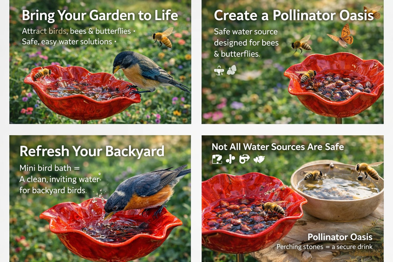 ✅ Use: Outdoor garden decor, bird bath, pollinator water station