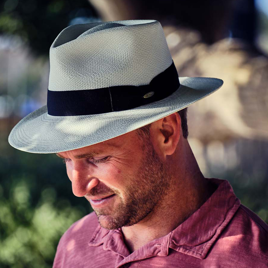 The Classic Panama in fine llano weave is a top of the range Panama hat. This handmade hat has been our most popular selling men’s hat for over 25 years. This perennial favourite is the true “Panama hat” and will bring both elegance and comfort to your summer wardrobe. The fineness of the fibres make it more flexible than our select weaves therefore it can be rolled for travel when used with our hat tubes.