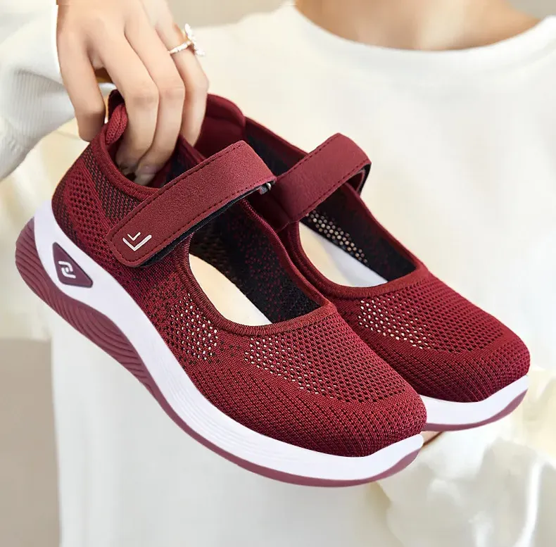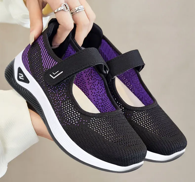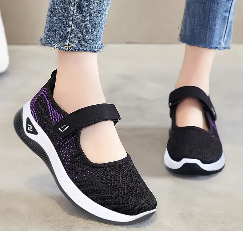 Round toe breath cloth with elastic hollow out knit upper, keeps your feet more comfortable. The mesh is nice for the heat of summer.