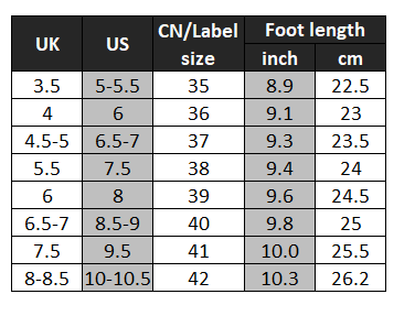 - Please select a suitable size depending on your foot length;