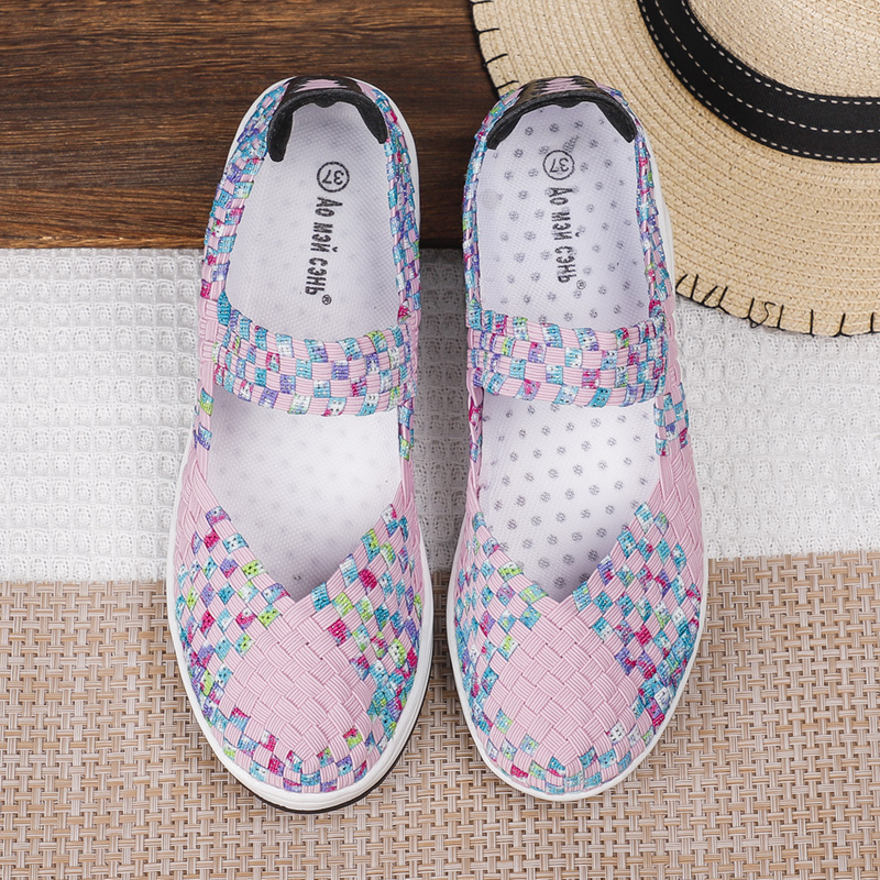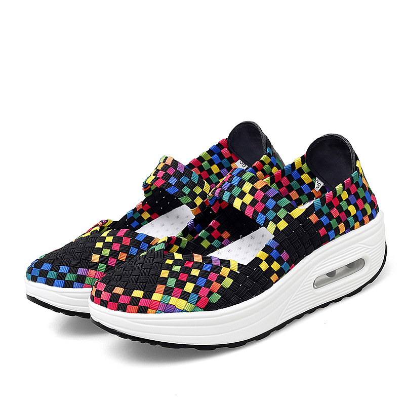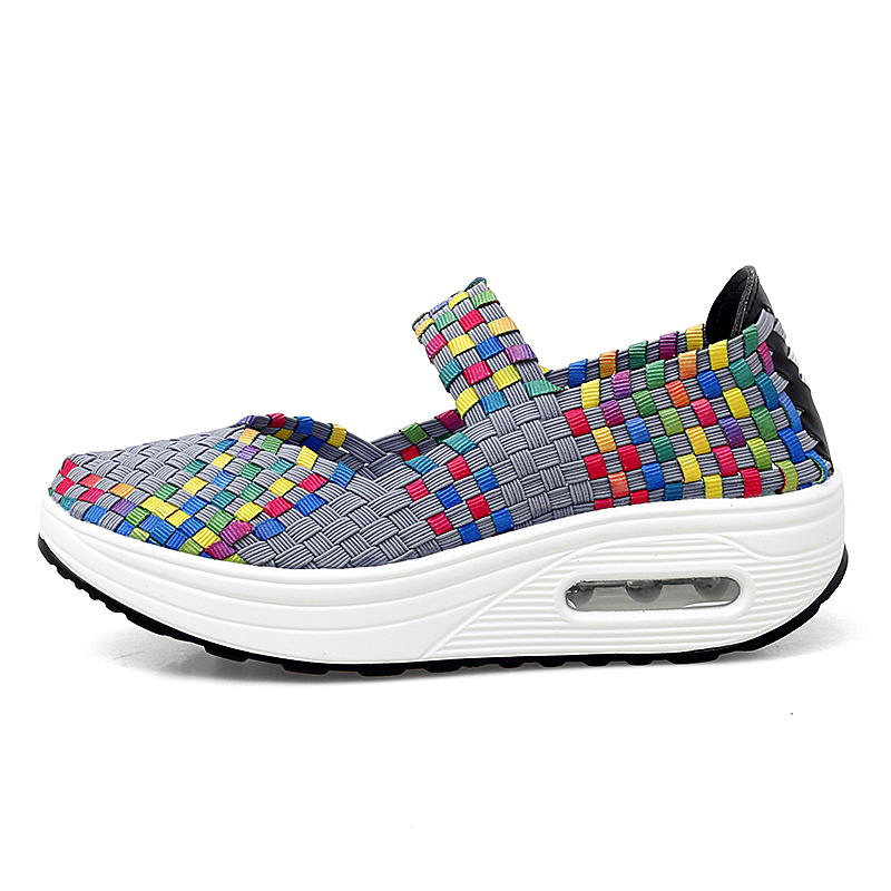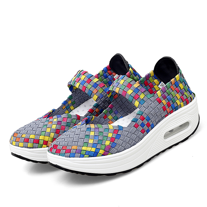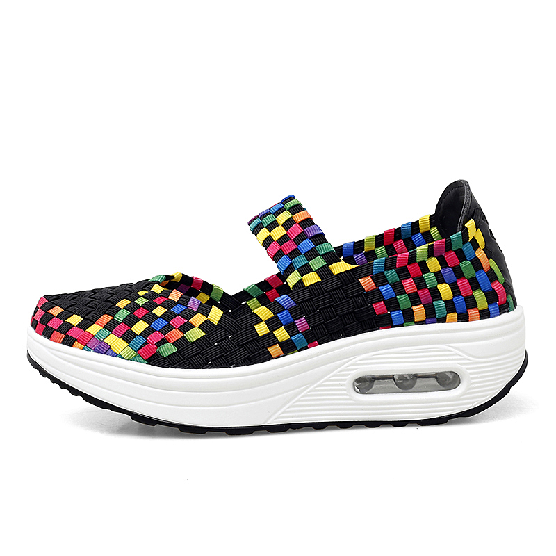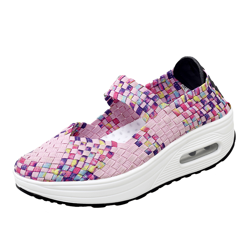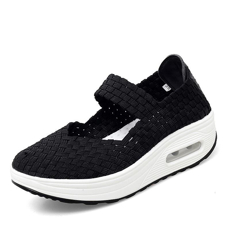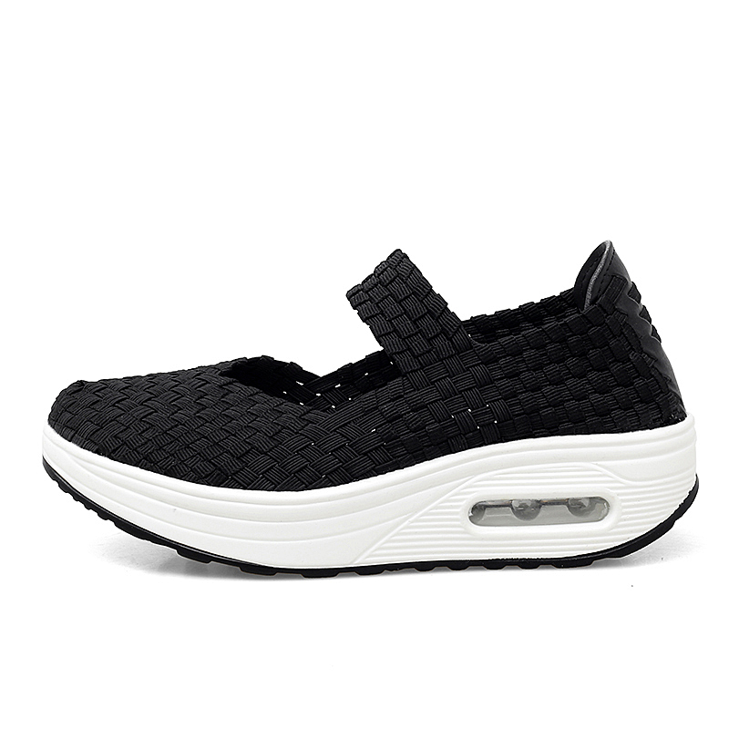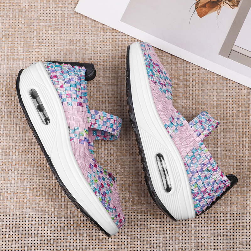 Women's Air Cushion Sports Sandals Slip-On Platform Closed-Toe Sandals Woven Pumps Elastic Wedge Shoes